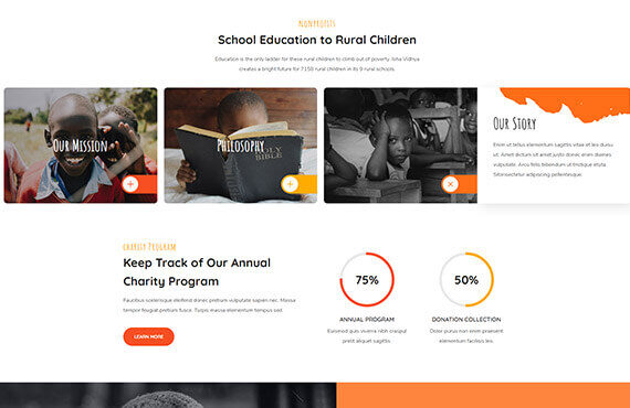 Instantly create your pages just by adding your content to those pre-made inner pages such as About Us, Our Services, Our Team, Donation…